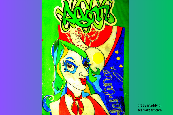 Maddy is a popular, self-taught local artist, lyricist and vocalist who has lived in Glastonbury since around 2001 and spent her childhood in Somerset. Her vibrant and unique work inspired by dreams, emotions, travel & adventure, hip-hop, psychedelic art, rock music, nature and childhood can be found at www.aeonloveart.com.